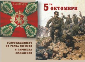 Инфраструктурни проекти за съвременния облик на Благоевград оживяват в уникално 3D светлинно шоу за 111 години от Освобождението на Горна Джумая За първи път в Благоевград! С внушителен мултимедиен светлинен спектакъл „Градът на съвремието“, съчетан с пиромюзикъл и празничен концерт на ансамбъл „Пирин“, Благоевград ще отбележи 111 години от Освобождението на Горна Джумая и Пиринска Македония от османско владичество. По време на мултимедийното шоу ще бъдат презентирани 3D ефекти на инфраструктурни проекти, свързани с идентичността и облика на Благоевград. Зрелищният спектакъл под открито небе ще стартира в 20.30 часа на площад „Георги Измирлиев“. Преди това жителите и гостите на града ще могат да се насладят на тържествен концерт на ансамбъл „Пирин“ под надслов „…и за Свобода“, чийто начален час е 19.30 часа. Богатата със събития програма за празника на Благоевград ще започне на 5 октомври в 9.00 часа в двора на църквата „Въведение Богородично“. Там ще бъде отслужена панахида за загиналите за Освобождението на Горна Джумая от османско владичество и в знак на почит ще бъдат положени цветя пред паметния знак на майор Иван Павлович Орлински, на паметната плоча на генерал Спас Георгиев и на паметните знаци в двора на черквата. В 10.00 часа на площад „Македония“ ще бъде издигнато националното знаме на Република България, а веднага след това в 10.30 часа на площад „Мите Марков“ ще бъдат положени венци и цветя на паметника на Македоно-Одринското опълчение „Майка България“. Честванията ще продължат с тържествена сесия на Общински съвет – Благоевград от 17.30 часа в зала „22 септември“.