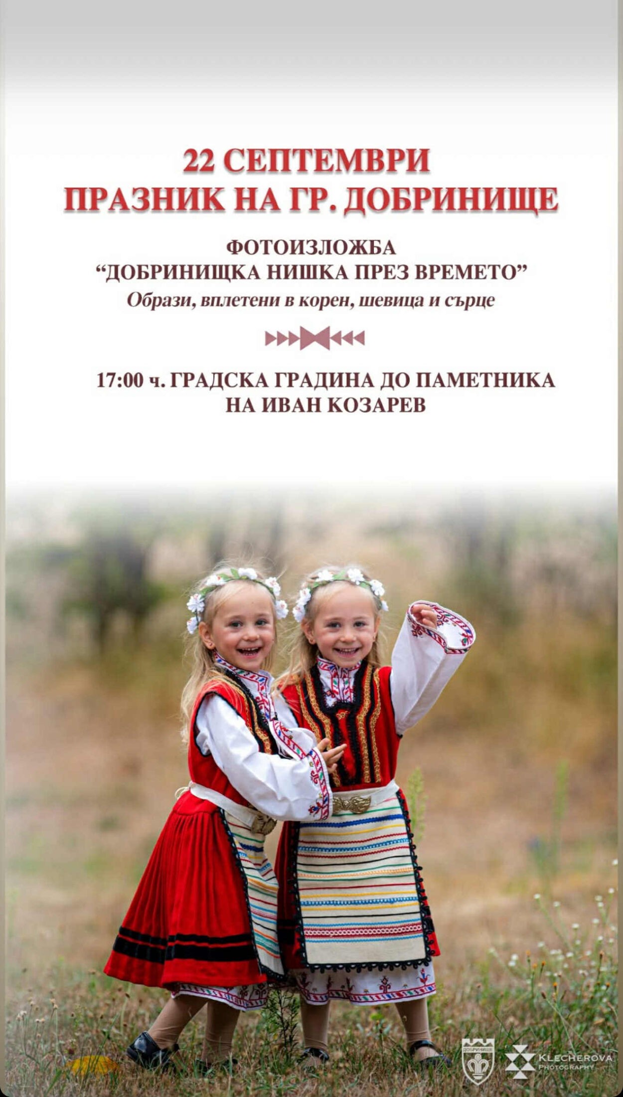 На 22 септември в родния си град Добринище младата и талантлива фотографка Христина Клечерова ще представи своята нова самостоятелна фотоизложба под надслов „Добринищка нишка през времето“. Експозицията ще бъде открита в градската градина до паметника на Иван Козарев от 17:00 ч. и включва 32 фотографии, всяка със своя уникална история.