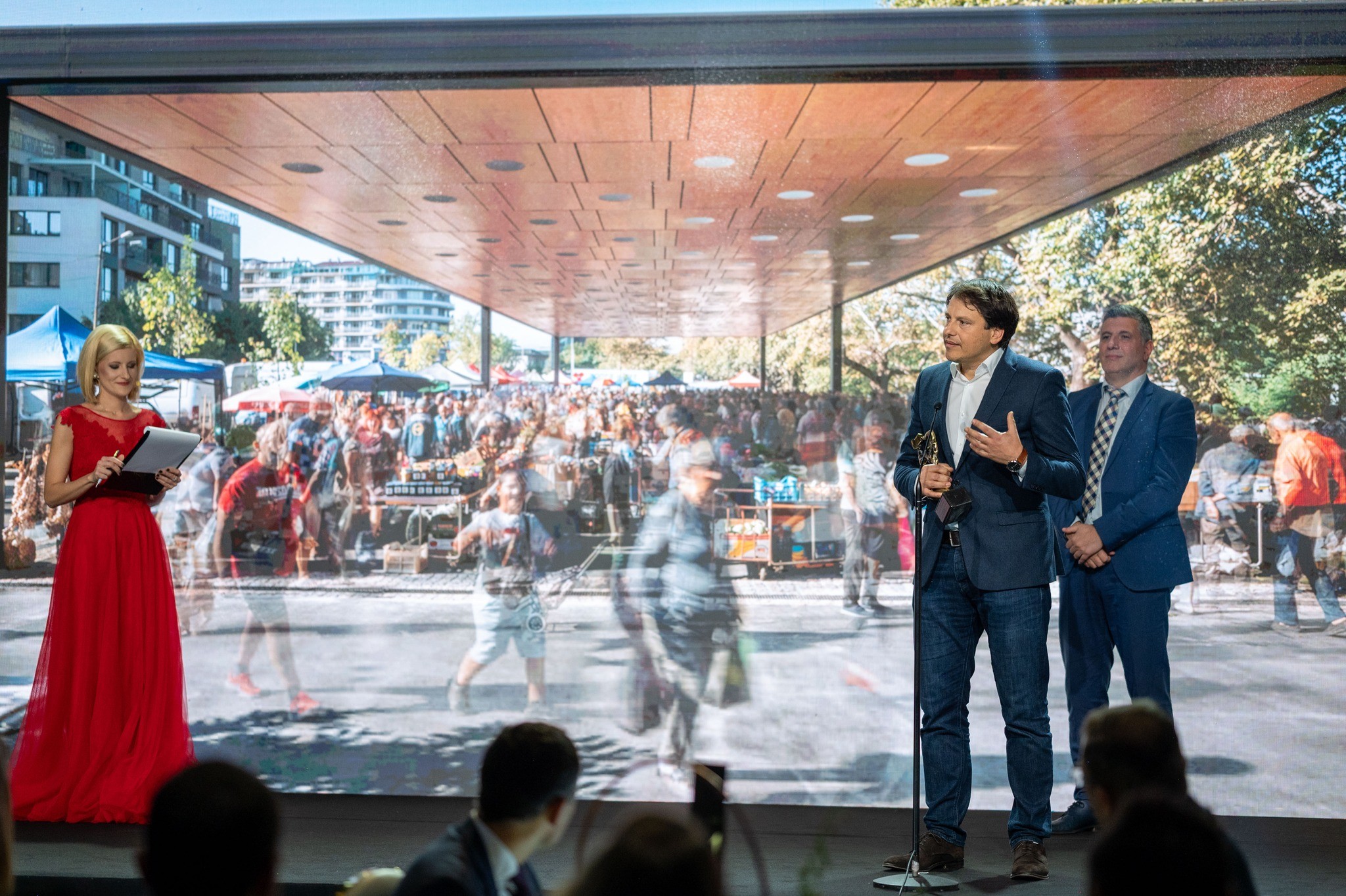 Сграда на годината за Фермерски пазар Благоевград! Казах, доколкото помня, че това е един Малък проект с Голямо значение, защото представя пазарите в нова светлина – като живо и многофункционално обществено пространство, като елемент от градската дневна. Получих много поздравления от архитекти (това не е особено характерно за гилдията) и за пореден път се убедих, че има жажда точно за такива леки, дискретни и ефирни проекти в градовете, уморени от претруфеност, еклектика и лош вкус.