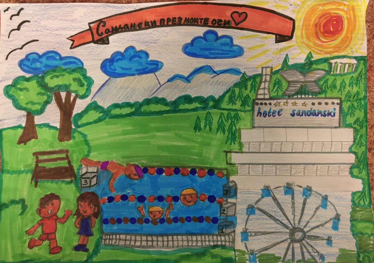 Още в първите творби ясно се вижда как децата възприемат Сандански. Най-често те рисуват парка с езерото, къщичката „Бъчва“, плувния интернат и църквата „Св. Георги“.