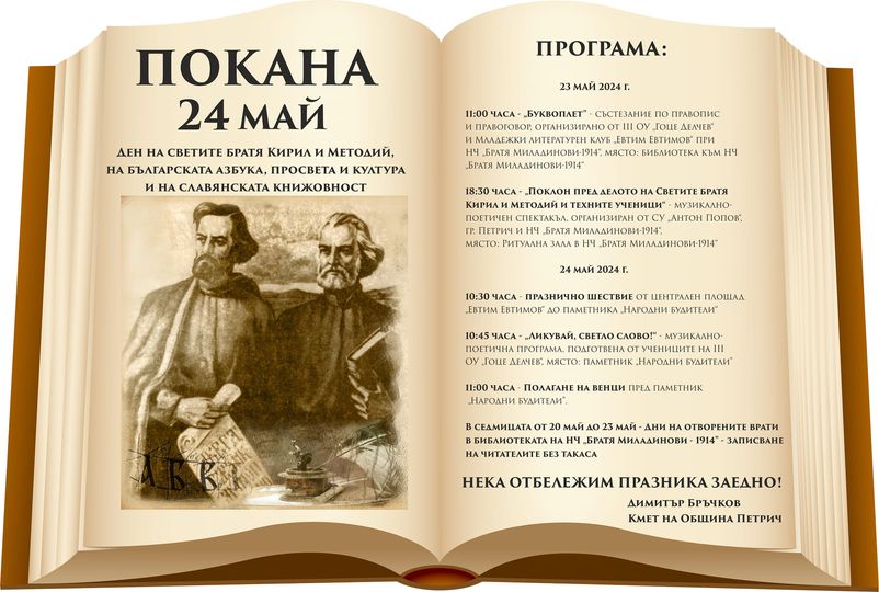 Заповядайте, уважаеми жители на община Петрич, да почетем с признателност 24 май!