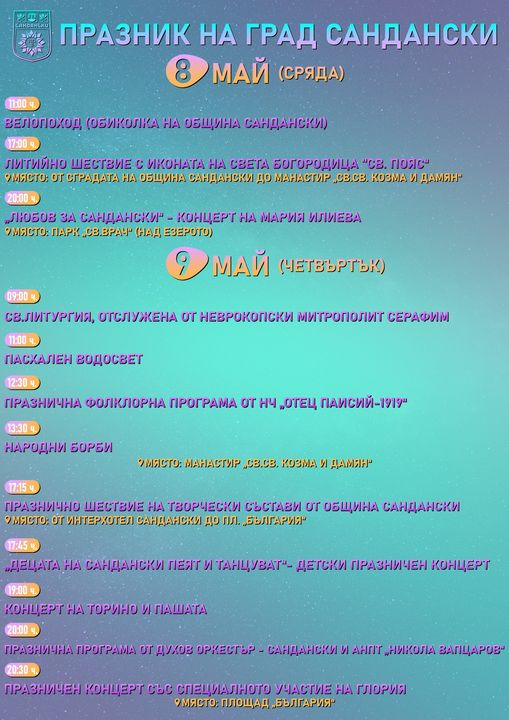 САНДАНСКИ ЩЕ ОТБЕЛЕЖИ СВОЯ ПРАЗНИК С БОГАТА ДВУДНЕВНА ПРОГРАМА!