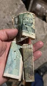 Днес сейфът е бил открит разбит, а съдържанието му – разпръснато по плажа. Хора от близкия квартал събират банкноти, докато собственикът отчаяно се опитва да спаси каквото може.