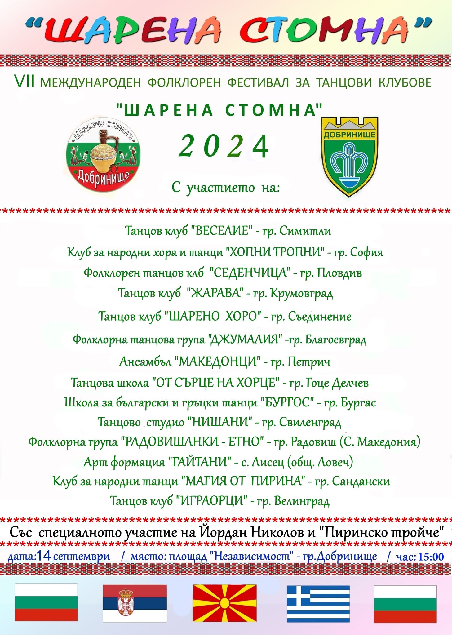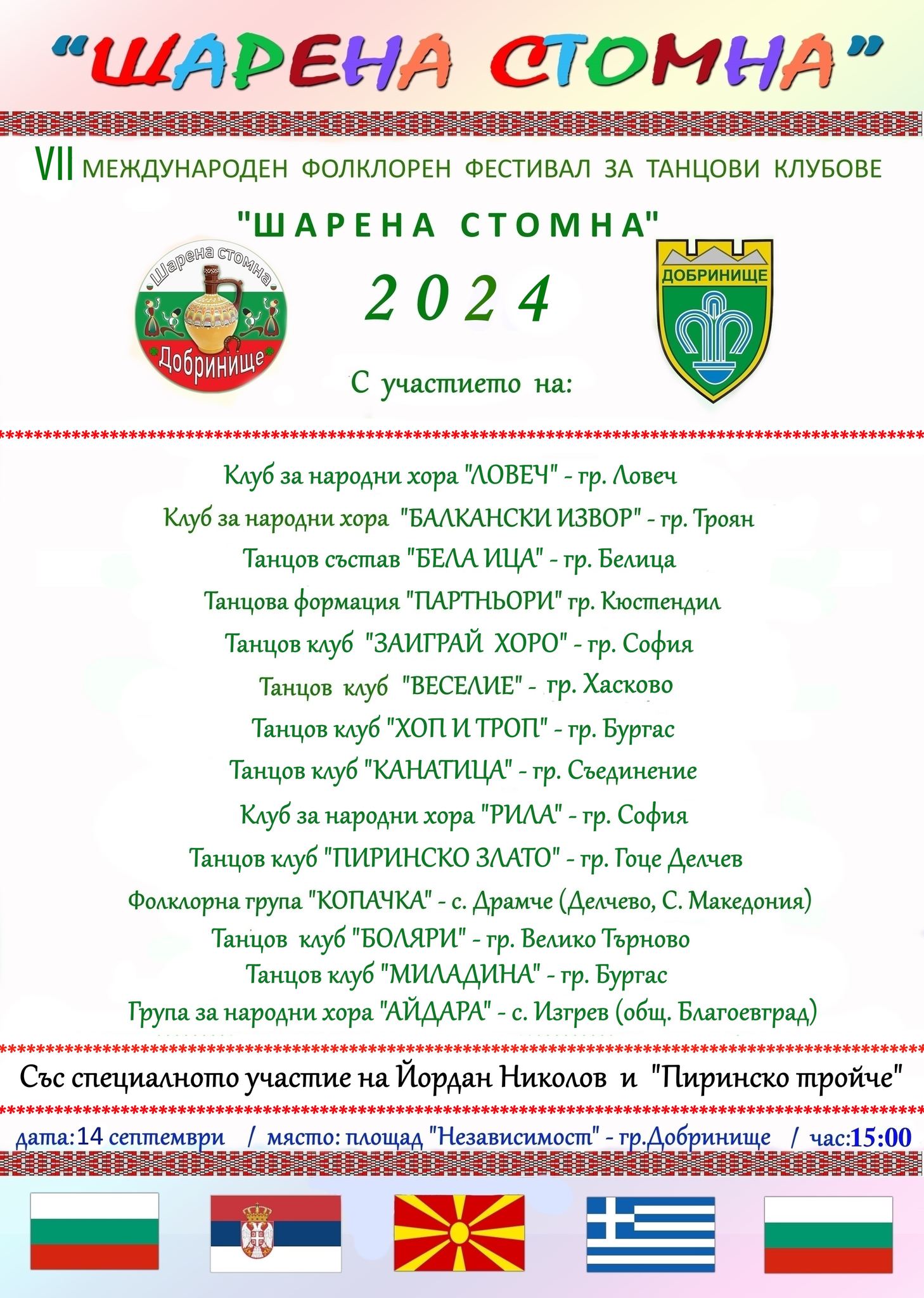 Седмото издание на Международния фолклорен фестивал „Шарена стомна“ обещава да бъде празник на българските традиции и фолклорното многообразие, съчетавайки ритми, носии и обичаи от всички краища на страната. Това е едно събитие, което ще изпълни с колорит и настроение както участниците, така и публиката.
