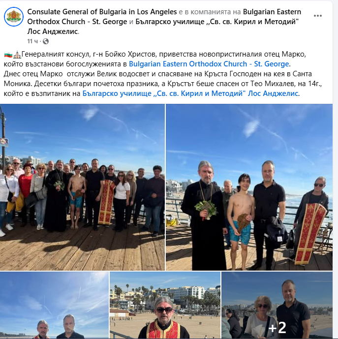 Българи спасиха кръста и в Лос Анджелис. Това съобщиха на страницата на консулстовото ни във Facebook. Обичаят се състоя на кея в Санта Моника.