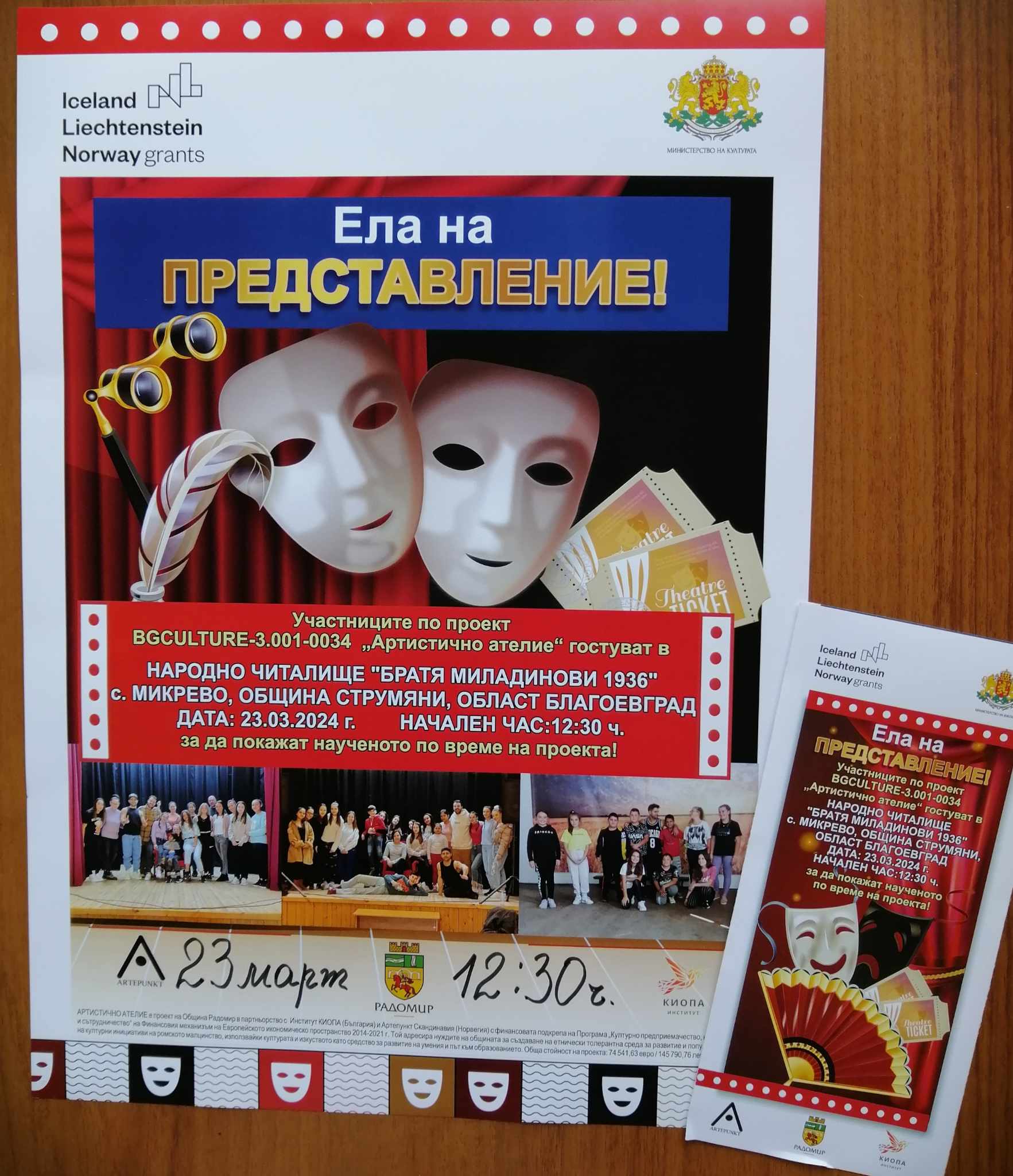 Участниците по проект BGCULTURE -3.001.0034 „АРТИСТИЧНО АТЕЛИЕ“, гр. Радомир гостуват в НЧ“Братя Миладинови – 1936″, с. Микрево, общ. Струмяни
