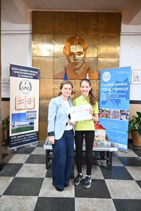 Наградите бяха връчени от г-жа Лалева, която изрази удовлетворение от високите постижения и достойното представяне на участниците.