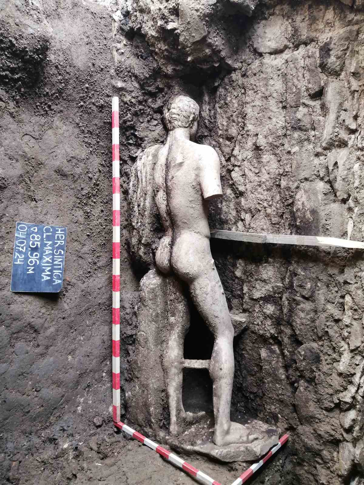 НОВООТКРИТАТА В ХЕРАКЛЕЯ СИНТИКА МРАМОРНА СТАТУЯ все още не е разкрита изцяло – другата ръка с преметната около нея дреха още не е освободена напълно от пръстта. Но ви я показваме пак и на този етап, в различни ракурси, защото вече си личи, че е великолепна! Правена е от майстор, използвал цял мраморен блок, вероятно през II век сл. Хр. Според археолозите има паралели с други изображения на бог Хермес, от известен иконографски тип е, но са запазени много малко подобни статуи по света. За България е първата.