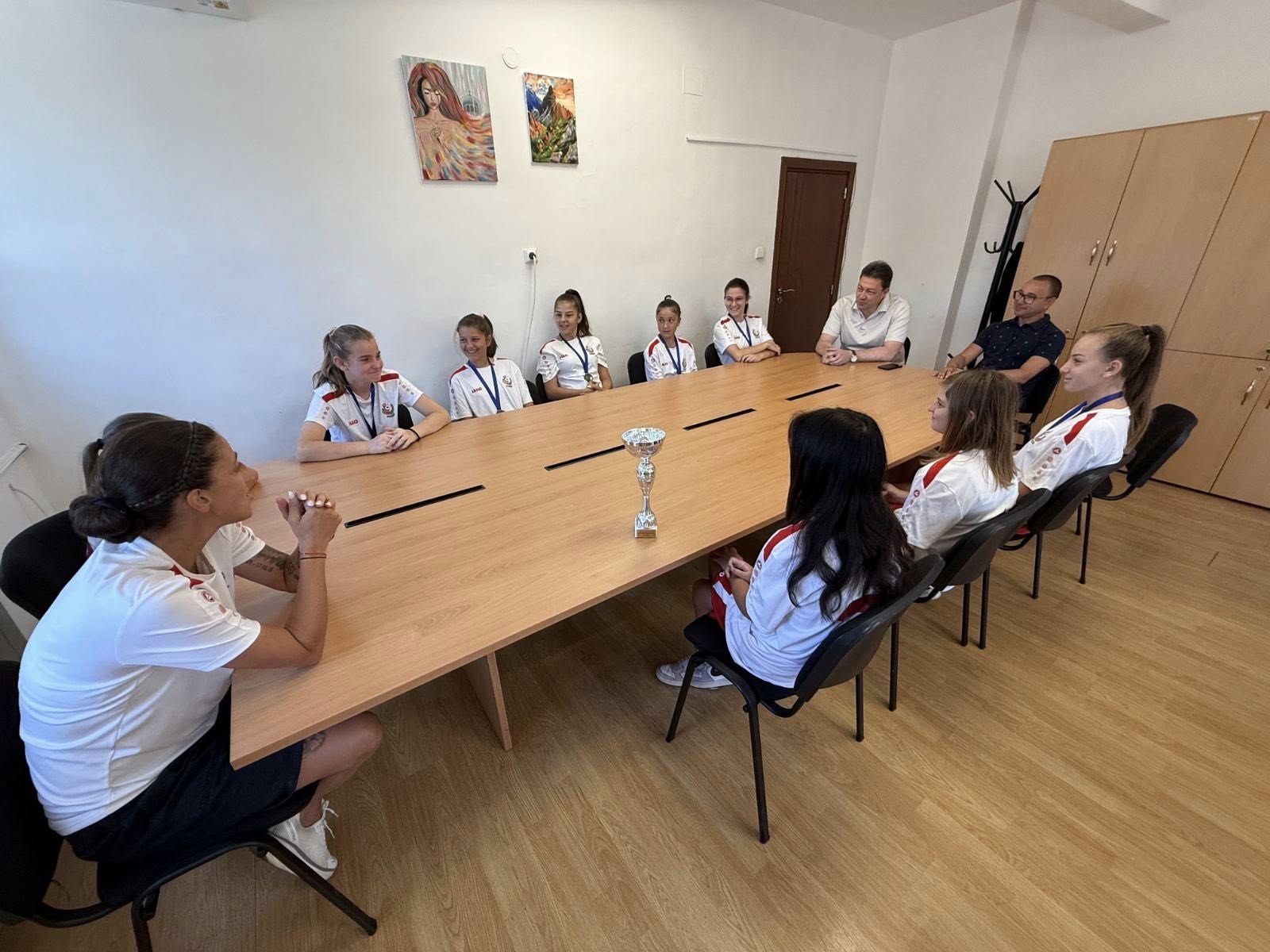 Златните момичета на ОФК „Беласица“, водени от треньора Лиляна Костова, се срещнаха днес с кмета Димитър Бръчков, за да покажат спечелената купа от международен турнир по футбол в Сърбия.